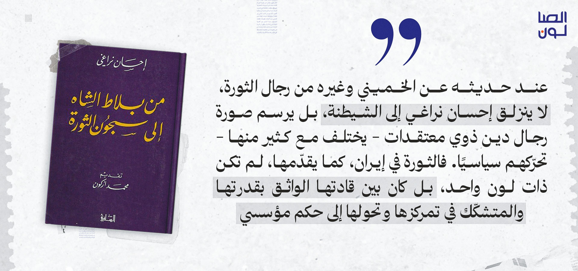 وعند حديثه عن الخميني وغيره من رجال الثورة، لا ينزلق نراغي إلى الشيطنة، بل يرسم صورة رجال دين ذوي معتقدات – يختلف مع كثير منها – تحرّكهم سياسيًا. فالثورة في إيران، كما يقدّمها، لم تكن ذات لون واحد، بل كان بين قادتها الواثق بقدرتها والمتشكّك في تمركزها وتحولها إلى حكم مؤسسي. وهذا التنوّع كان أحد أسباب استدعائه للتحقيق ثم سجنه، لكونه جالس الشاه قبيل سقوطه، مع الإشارة إلى أنه تلقّى معاملة أكرم بكثير من تلك التي لاقاها معارضو الشاه أو حتى خصوم الثورة، بما في ذلك الأثرياء الذين هربوا الجزء الأكبر من ثرواتهم ثم تنازلوا عمّا تبقّى مقابل السماح لهم لاحقًا بالخروج الآمن – بلا عودة – ليصبحوا جاليات ثرية في باريس وكاليفورنيا.